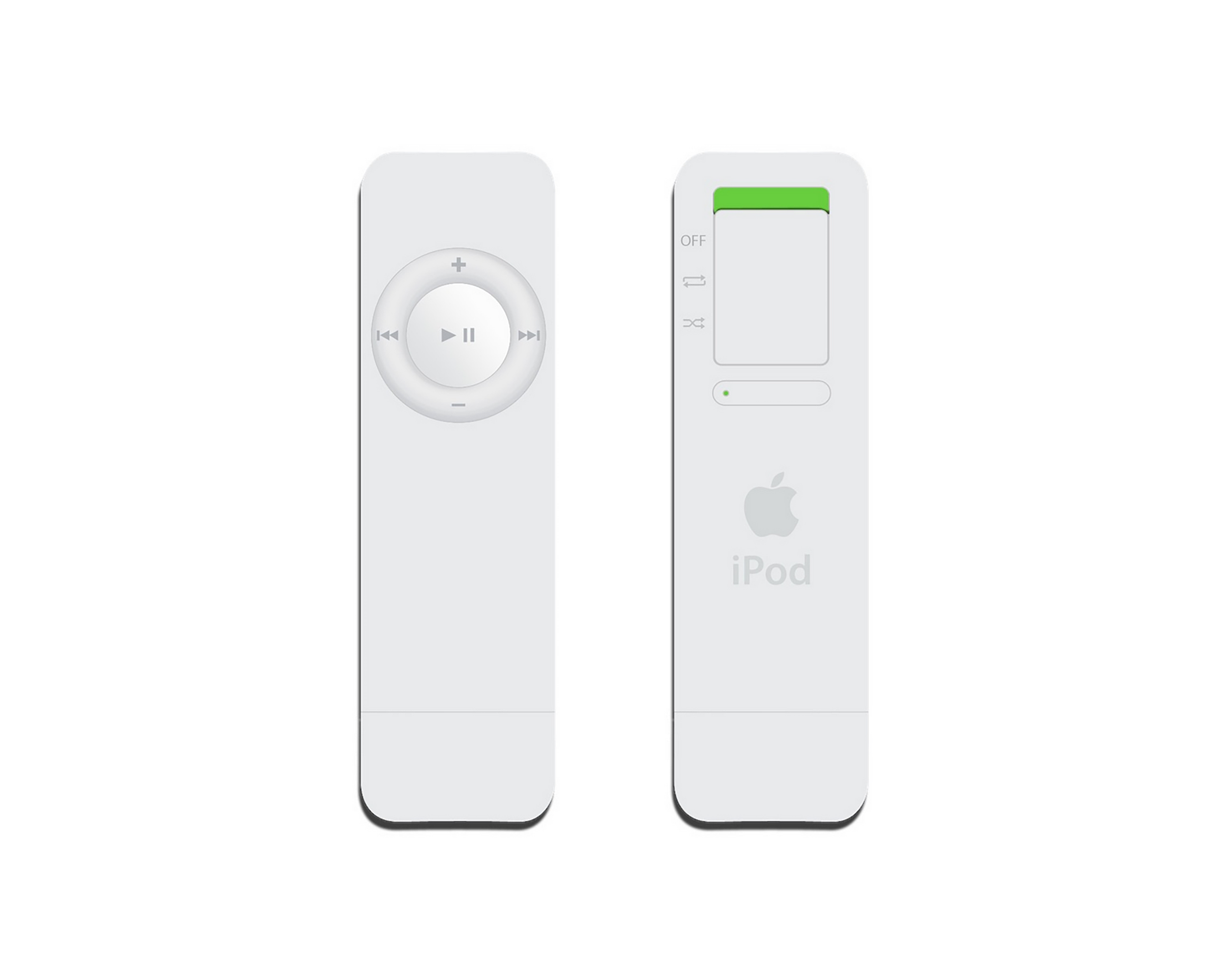 The 1st generation iPod shuffle is a USB Drive stylized iPod. It lacks a screen and and offers little storage when compared to all other iPods in the iPod lineup.